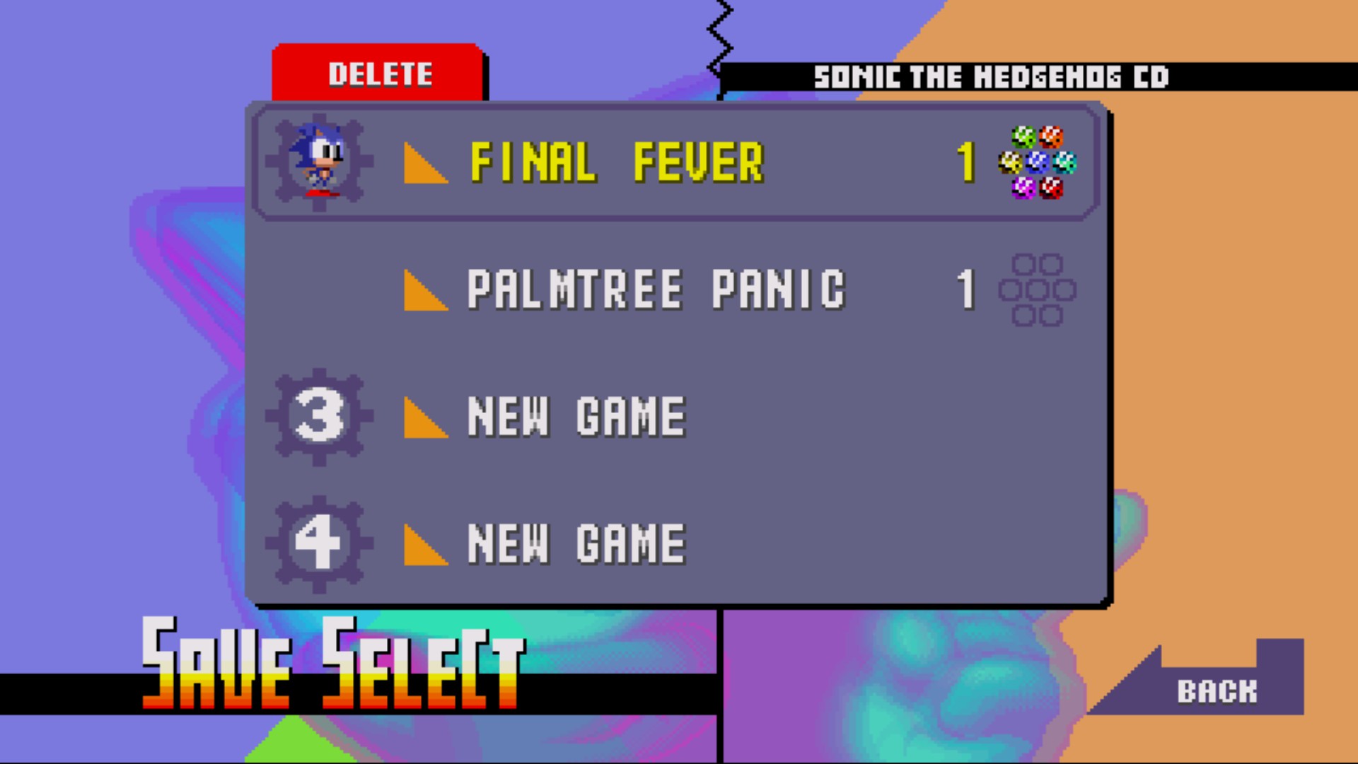 The resulting font bore a passing resemblance to a specific font infrequently used in the 2011 remake of Sonic the Hedgehog CD (Notice the little "Delete" and "Back" buttons).